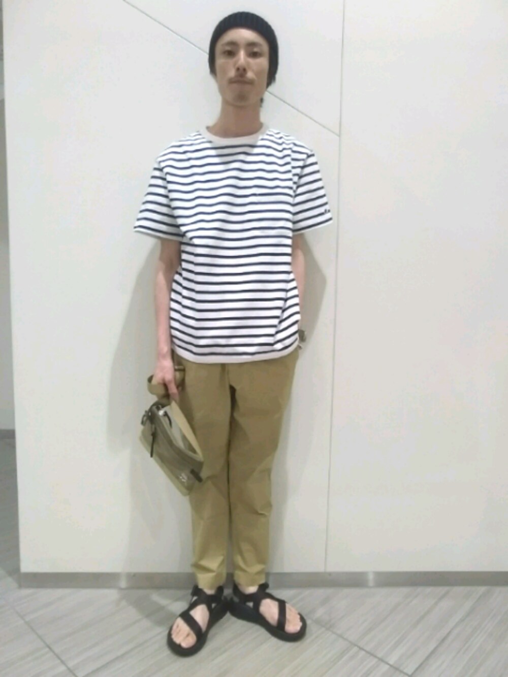 ボーダー×ベージュ リラクシングカジュアルスタイル トップスはチャンピオンのボーダー👕 ボトムスはグラミチのワンタック👖 その他コーディネート↓ https://www.urban-research.jp/staff/6882/