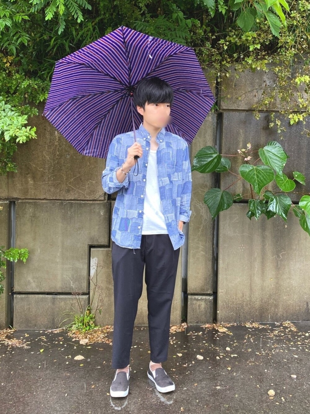 梅雨入りしましたね、コウスケです! 梅雨入りしましたねー!しばらく雨が続きそうだ。嫌だなー!(涙) ランニングするのが趣味で生活の一部になっている自分にとって、嫌な季節です。 早く梅雨、明けてくれー!(笑) 今回の服装です。 シャツは古着。 Tシャツ、スラックス、スリッポンはGU。 傘はDAISO。