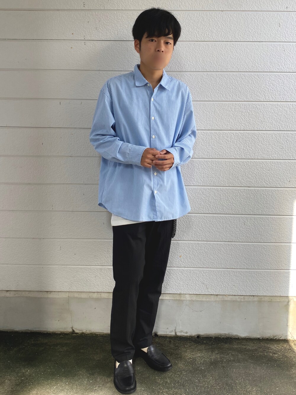 寒い!コウスケです。 寒くなってきましたね〜。冬が近づいてきた感じ…。新しい冬服欲しいなぁ。 今回の服装です。 シャツはSENSE OF PLACE。 スラックスはレイジブルー。 シューズはGU。