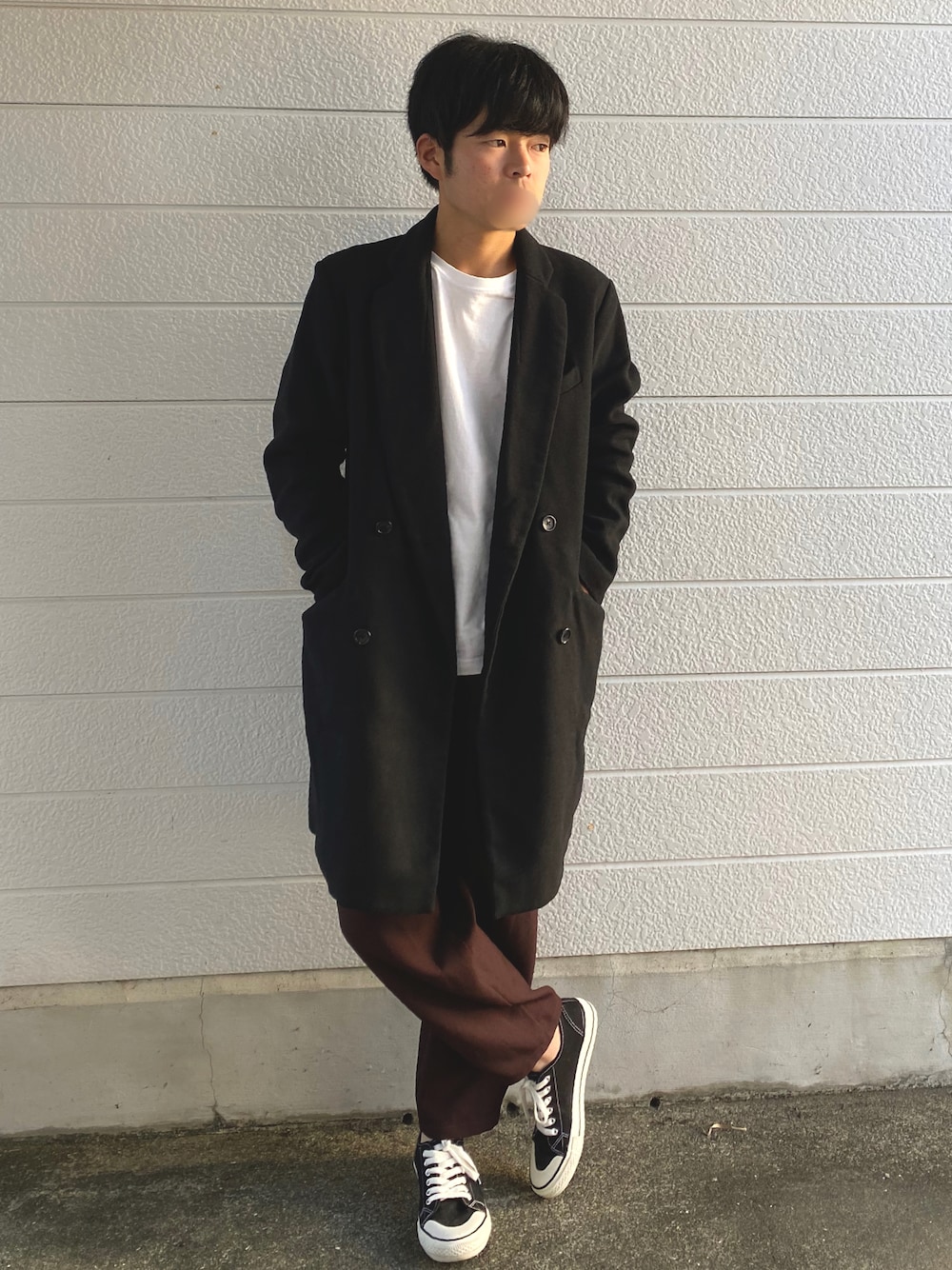 コウスケのチェスターコート「WEGO/メルトンダブルチェスターコート」を使ったコーディネート