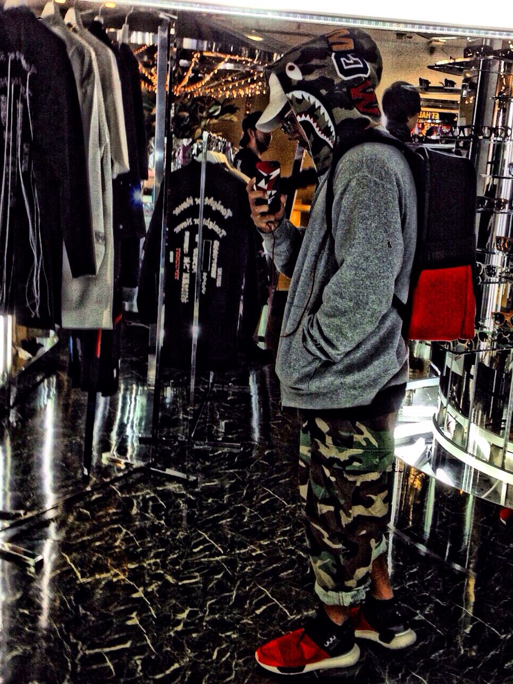 この日はショップを見に行ったらqasaといい感じのリュックがあるじゃないか!と、思い即購入しました\(^o^)/ 東京のカニエ・ウェスト!とか言いながらすごいカニエを意識したコーデにしました! 分かりにくいですがsupremeはTシャツでパンツは軍パンビンテージ物です☺️