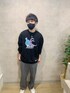 デザインスウェットコーデ。 スウェットのデザインが強いので、パンツとスニーカーはシンプルにまとめました!