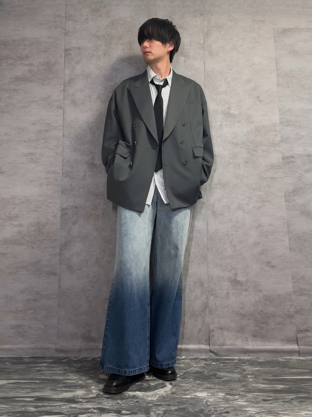 kosukeのテーラードジャケット「《UNISEX》Wool Mix Prime-Over Peaked Lapel Double Tailored Jacket/ウールミックスプライムオーバーピークドラペルダブルテーラードジャケット【MAISON SPECIAL/メゾンスペシャル】■セットアップ対応■」を使ったコーディネート