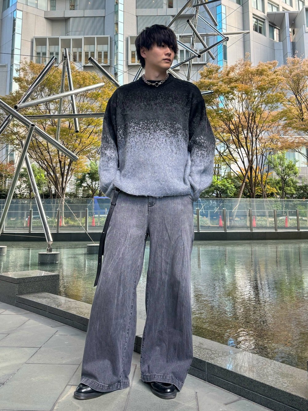 kosukeのデニムパンツ「【VELNUS】Vintage design gradation crack wide flare denim/ヴィンテージデザイン グラデーションクラック ワイドフレアデニム」を使ったコーディネート