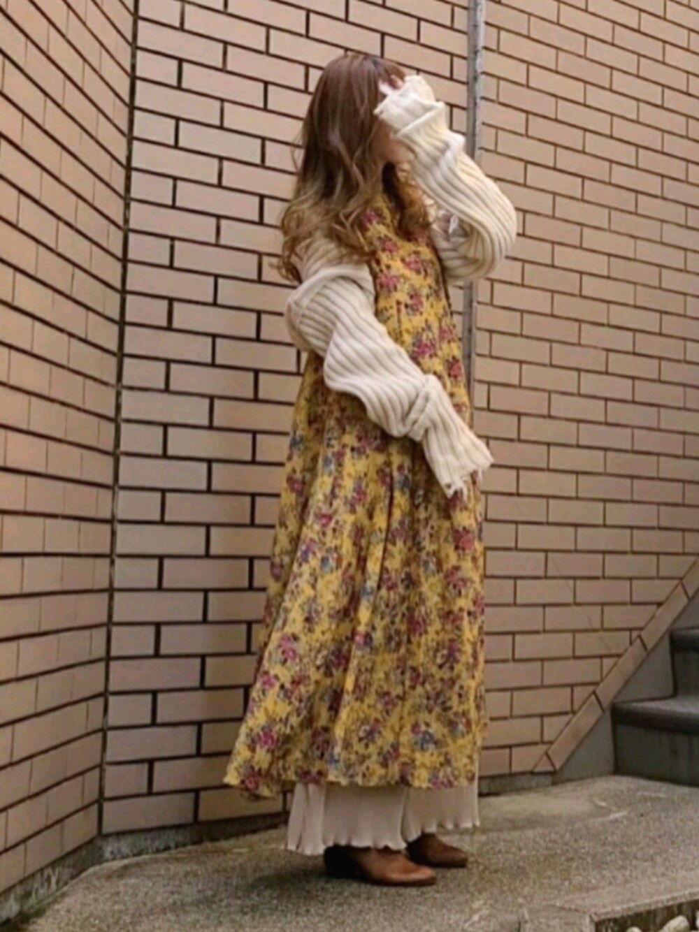 柄物ワンピースを主役にレイヤードコーデに🍂 Instagram >> @__kosumeru058__