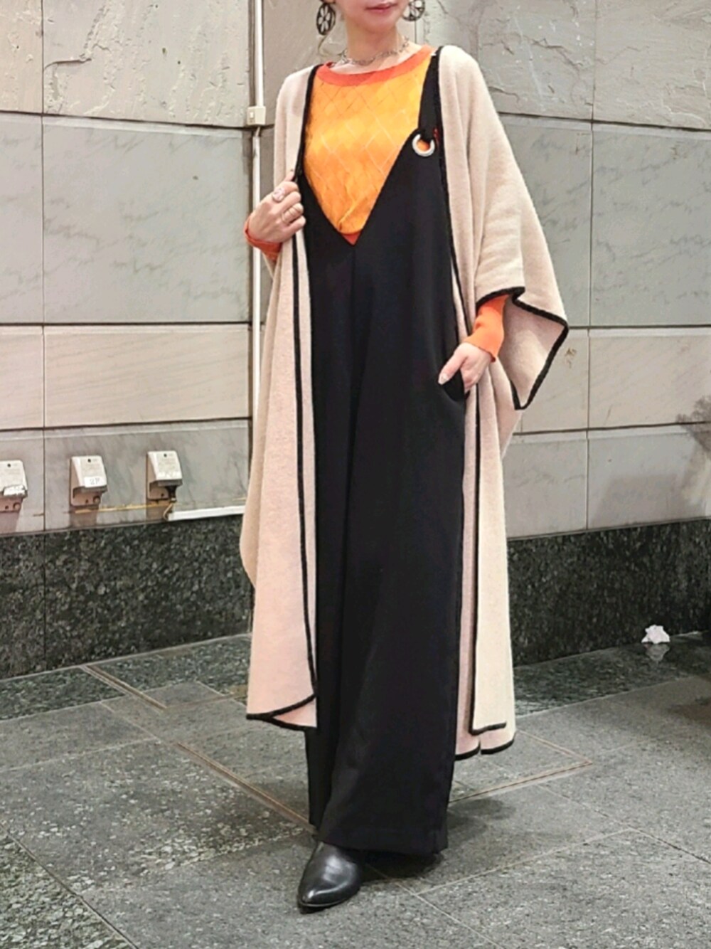 ゆるっとしたサロペットにオーバーサイズのロングガウンを🐏 差し色にオレンジ🍊 Instagram >> @__kosumeru058__