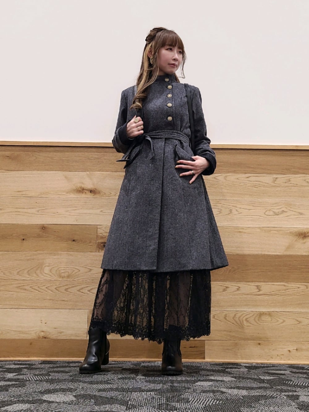 クラシカルなコートを主役に🧥 レースのスカートで若干の甘さを💫 Instagram >> @__kosumeru058__