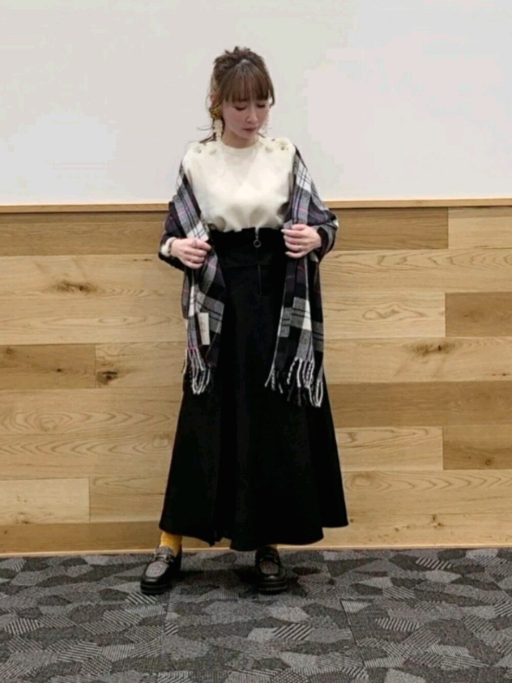モノトーンコーデにチェックでポイントを💫 Instagram >> @__kosumeru058__