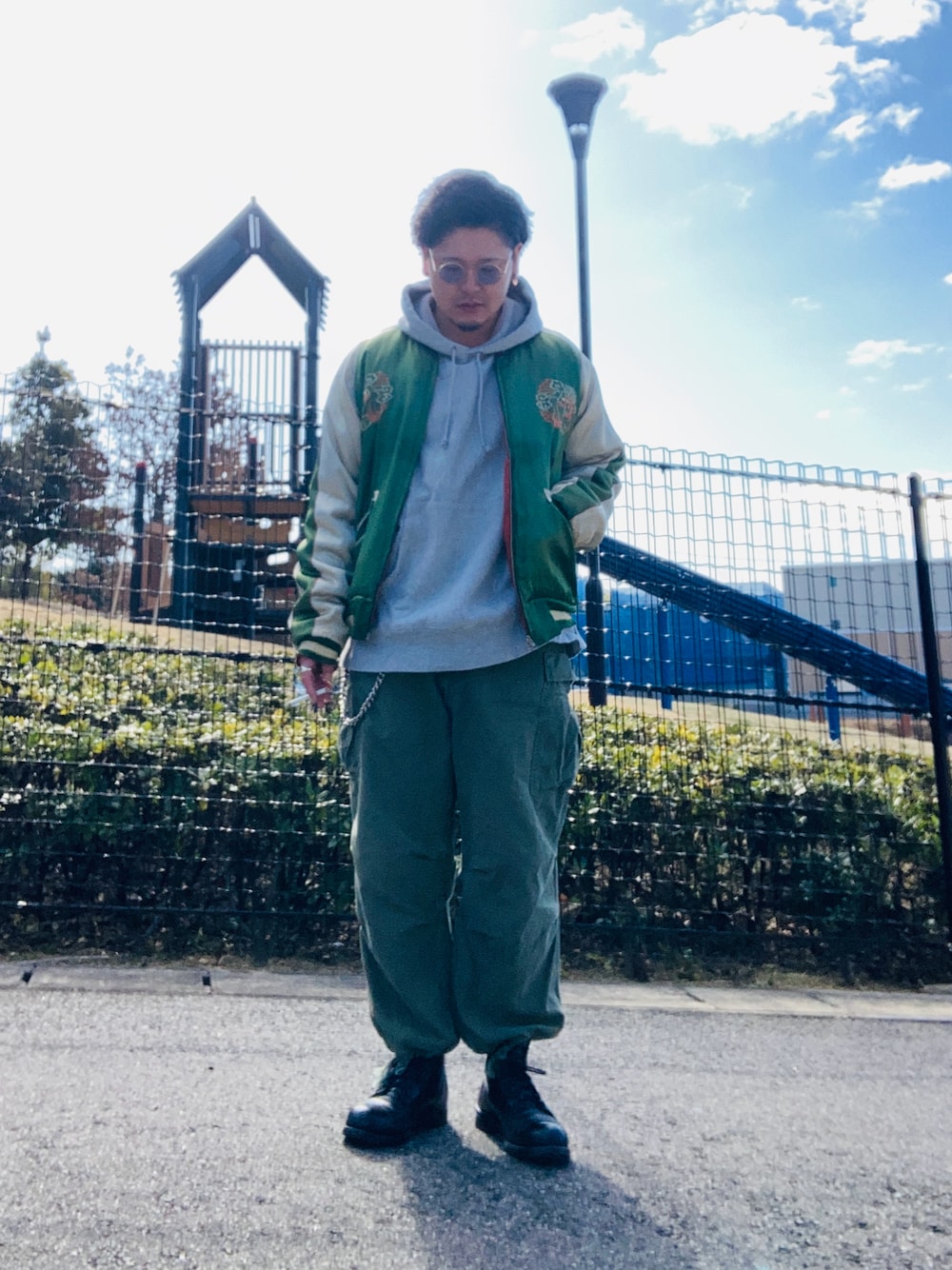 jacket:50s souvenir jacket tops:90s Champion reverse weave hoodie pants:50s U.S.army M-51 field pants shoes: 80s Canadian army leather boots