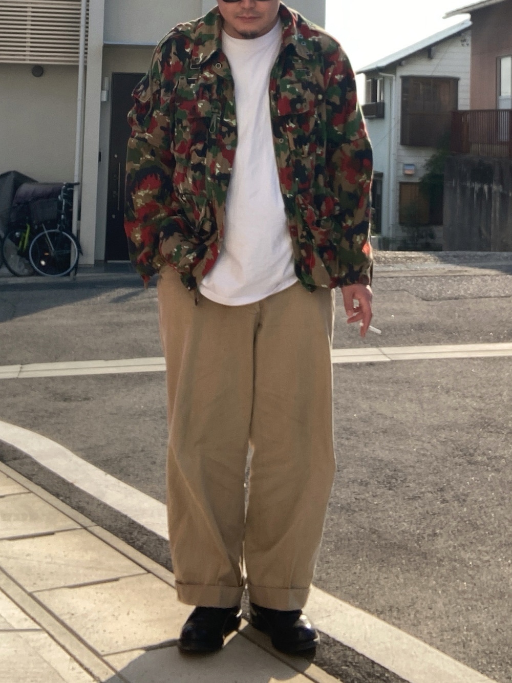 jacket:60〜70s Swiss army M1960 mountain jacket tops:Goodwear super big tee pants:50s U.S.army chino trousers shoes: 80s Canadian army leather boots
