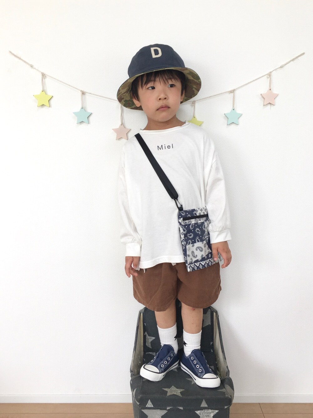 ピックアップタグ #サコッシュ ネイビー×白×ブラウンで 珍しく落ち着いたカラーリング✧༚゜ 今季トレンドなバンダナ柄 小物だと取り入れやすい♪ 普段こうたバッグは100均だったり 大人用をむりやり短くして使ってるけど、 やっぱりキッズ用に作ってるのは サイズも紐の長さもちょうどいいね 長さ調節できたから もっと短くすれば良かった〜 他もいろいろ納得いかなくて このコーデボツにしたかったけど、 サコッシュ使ってるの これしかないからあげちゃう! そしてタイダイ隊 続々参加してくれて嬉しいです♡ 引き続き #タイダイ隊のタグ付けして ご参加ください♪ ずーっと虫が触れなかったこうたさん 最近ようやく触れるようになったら 何でもかんでも触る!持つ!掴む! てんとう虫からダンゴムシ、 あげくに毛虫まで… 虫が超絶苦手な母は毎日悲鳴😱 そして虫じゃないけど こないだはおたまじゃくしも! ぜひ小窓ご覧ください←