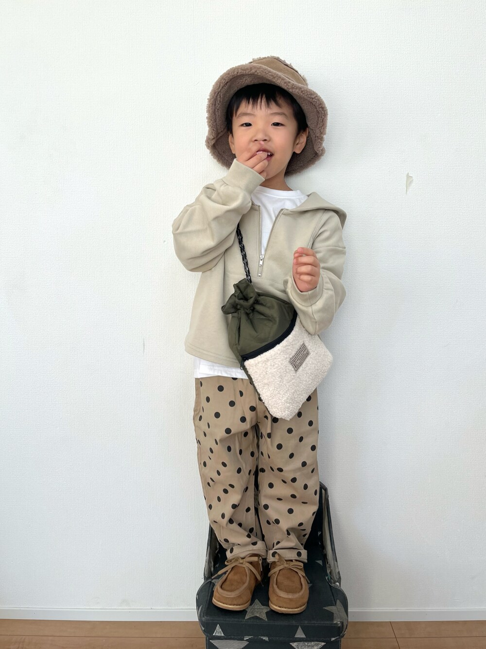 昨日のタグ#巾着バッグで載せる予定だったやつ 編集してない&朝から家事に追われてて あぷ出来なかった⤵︎ 最近寝落ちがひどすぎて… こうた寝かせたら残った家事終わらせて お茶でも飲みながらwearゆっくり見よ〜♪ なんて思うのに、ほぼ毎日 寝かしつけでそのまま自分も落ち💤 しかもそのまま朝まで爆睡するという(笑) なので最近コメ返は遅いわ TL周りもちゃんと出来てないわでごめんなさい🙏 さて気を取り直して←笑 コーデは久しぶりにキッズらしい可愛い感じ! セーラーさんにドットパンツ●●● 実際はたぶん全然違うんだけど 着せてたらなぜかひつじ飼いに見えてきたから、 とりあえずバッグと帽子で もこもこさせときました🐑←雑w