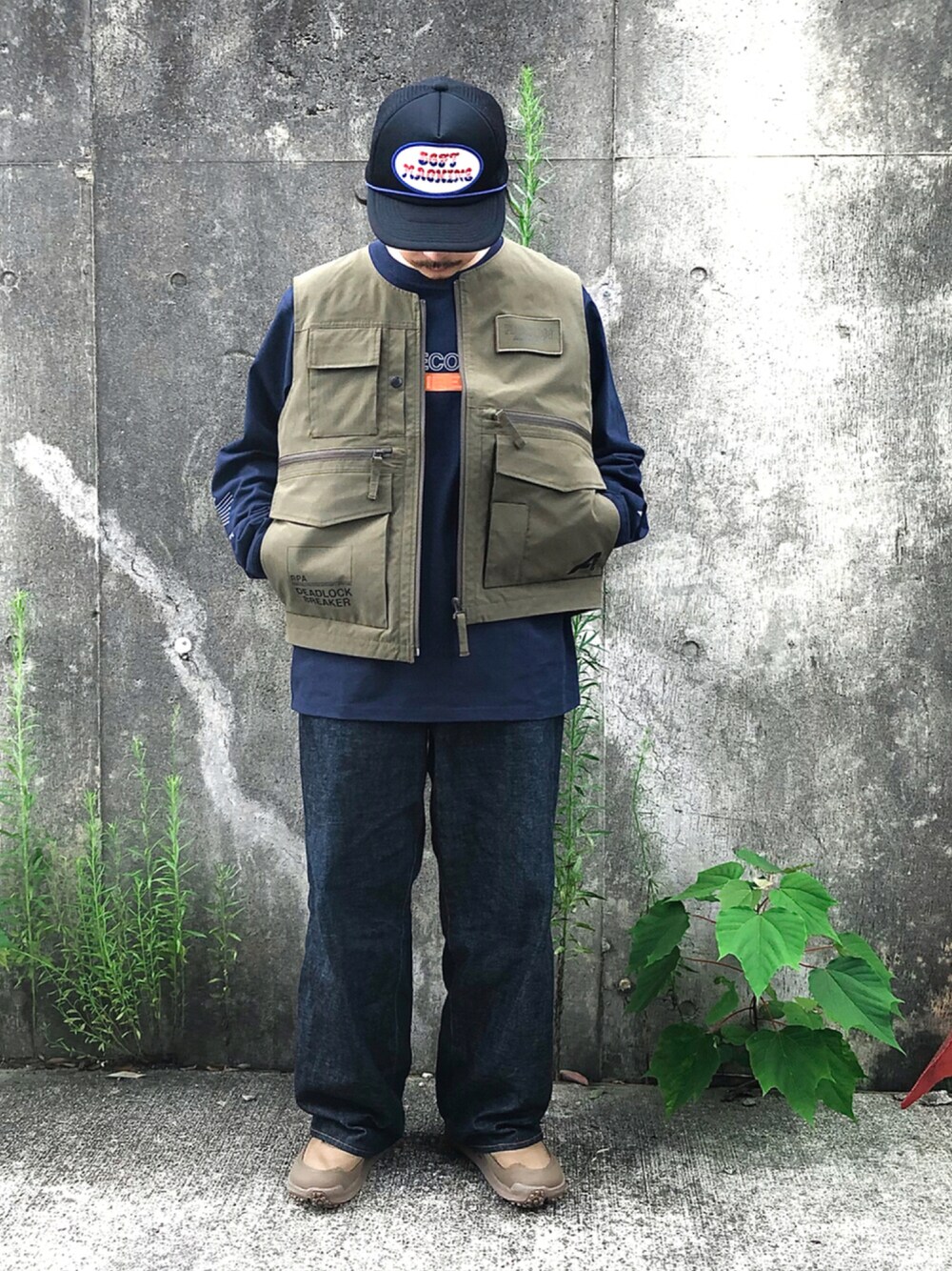 スタッフ身長: 165cm 着用サイズ ロンT: XL(NAVY) ベスト: L (OLIVE)