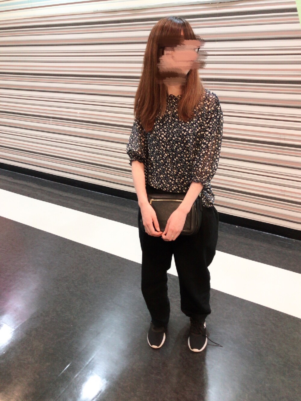 いつもいいね、お気に入り ありがとうございます⸜(* ॑ ॑* )⸝ 今回はモノトーンコーデ(^^) ハトマの花柄トップス 程よい透け感があって いいですよね😆