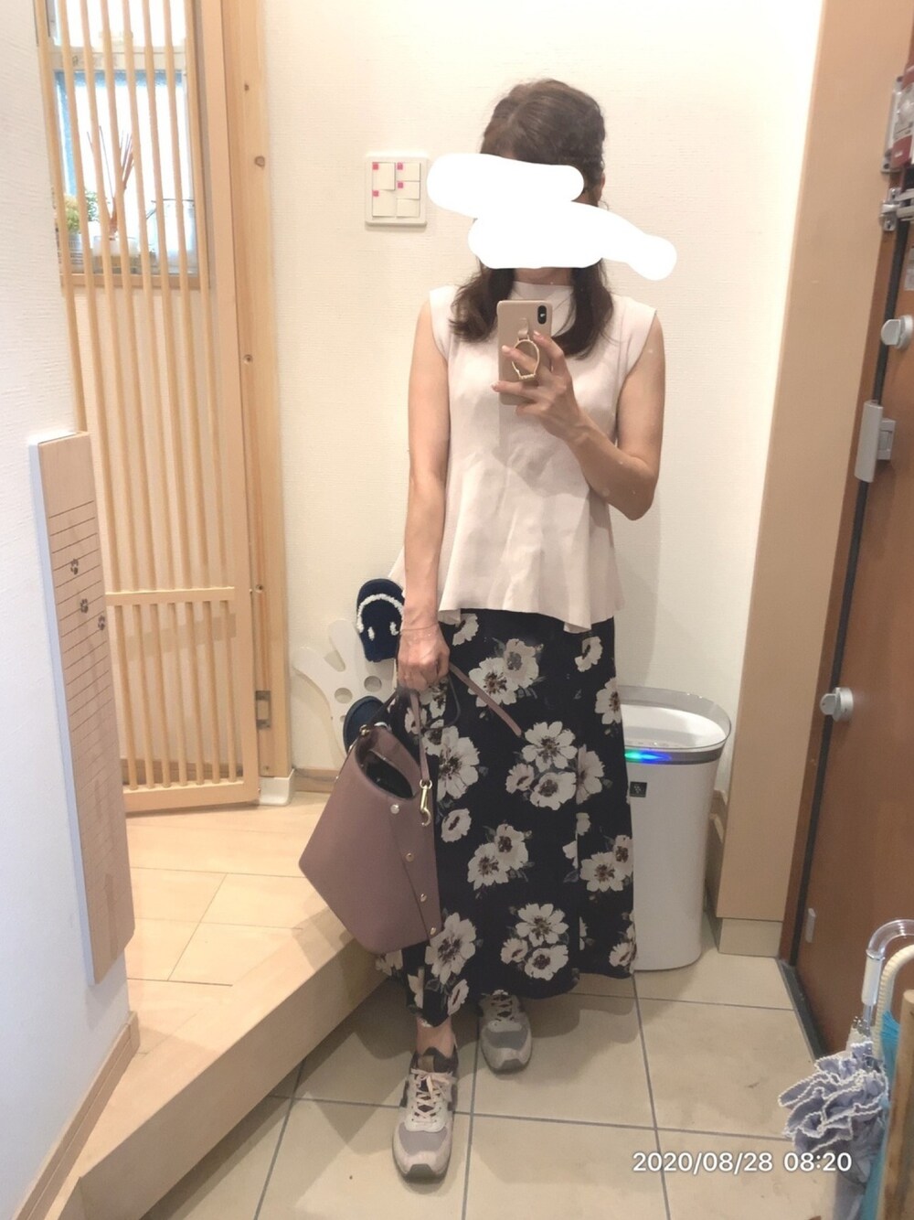 スカートの花の中央がくすみピンクで、バッグと靴の色を合わせてます🌸 まず最初に言うべきことがあるだろーが(・∀・) 常識ないやつー(・∀・) バカなの(・∀・) まねっこすごいし(・∀・)