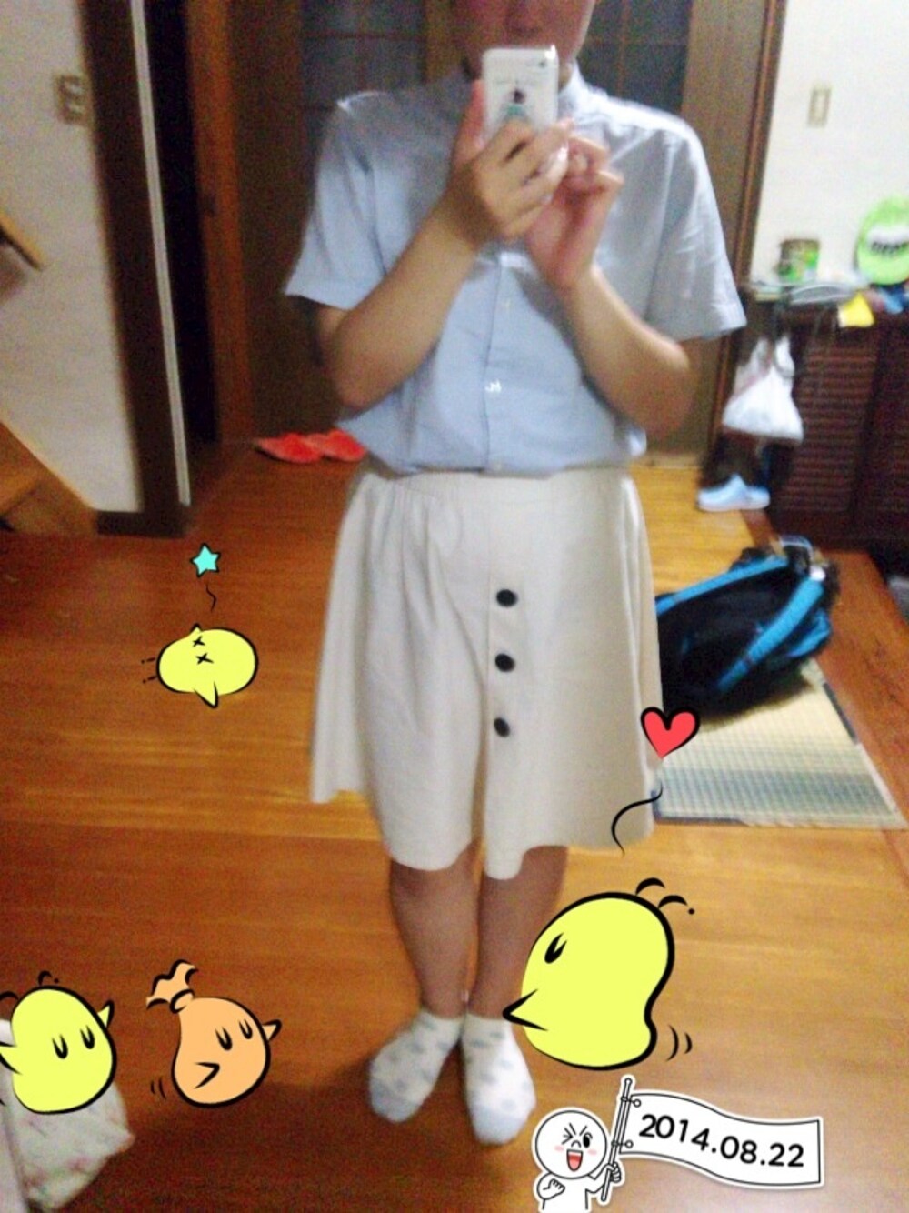 さわやか夏コーデ笑 今日は爽やかやなー😮って言われたから😎 スカートはみっちゃんの大学の学園祭で 三円でげっとした!😎 それをずっと履きたいなーっておもってて この前この襟にオンオフって描いてる シャツを見つけたのでこのコーデやってみたかった! 今日は学校行って、勉強して 眞子りんと初めて美容院行って 髪染めた(^o^) 思った色とちょっこし ちがうけんど 気に入ってます!\(^o^)/