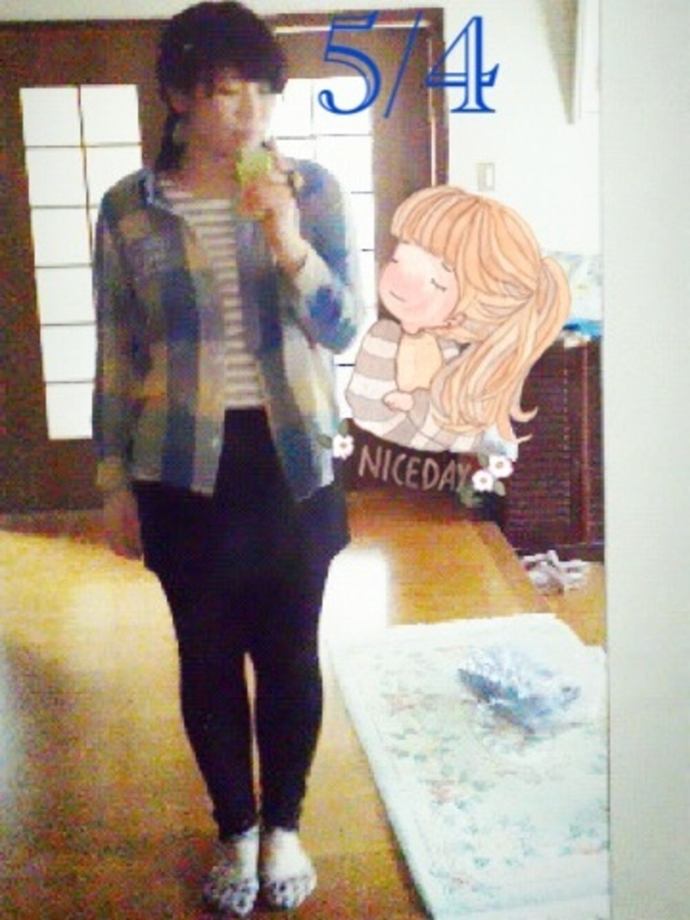 こてのシャツ/ブラウス「水色系チェックシャツ」を使ったコーディネート
