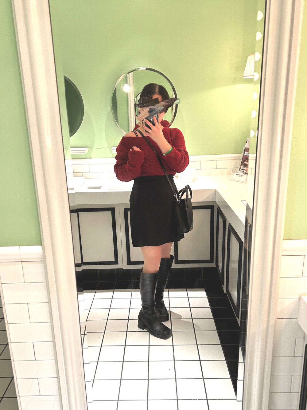 クリスマスにぴったりの赤のニットを使った コーデです!それ以外はブラックで引き締めました!上にはコートを羽織ってクリスマスマーケットやイルミネーションを観に行くのもいいですね☺️