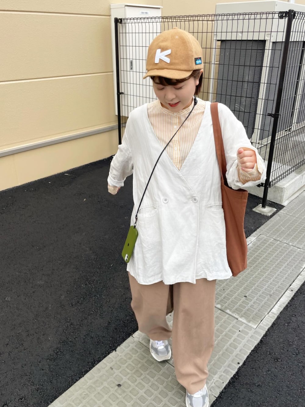 ゆるカジュアルコーデ 暖色系のお洋服に合わせて、 メイクも暖色&ブラウン系のカラーに🤎 アイシャドウはちふれを使っていて 1番明るい色で涙袋を塗るとうるうる瞳になります! ベース系は最近はまってるTIR TIR で統一してます!