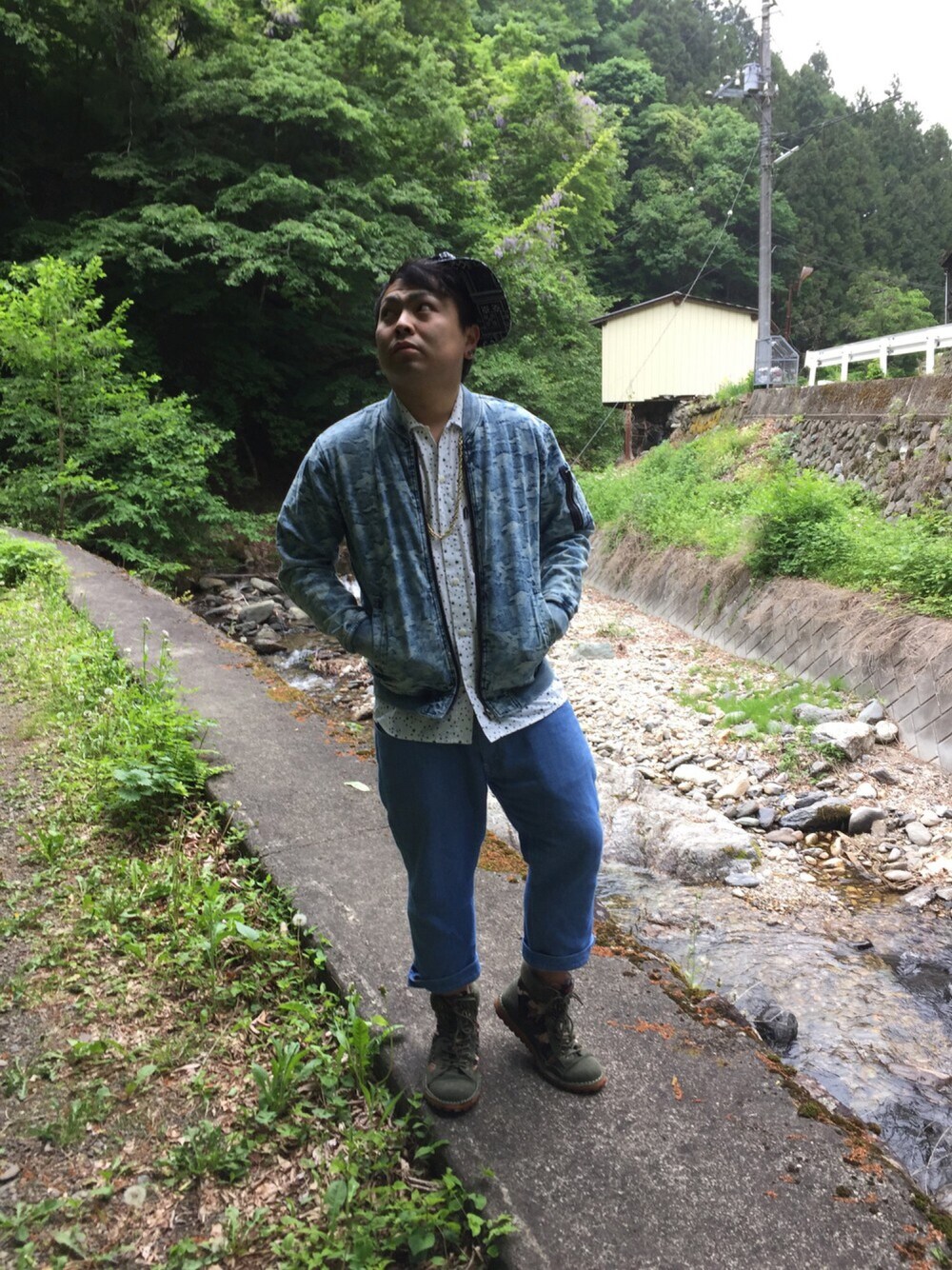 本日のコーデ! カモフラのMA-1! デニム素材がいい感じです! インナーは7unionのシャツ 星柄のデザインが気に入りました! パンツはデニム! ディテールが好きです! シューズはトップスに合わせて!カモフラ! CAPはLRG! 特殊な柄が面白いです!