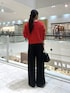 〈カーディガン〉 カーディガンとしてもプルオーバーとしても前後2wayで着用いただけるニットプルオーバー。 肌触りとても良くチクチクするのが苦手な方におすすめ。 程よく緩さのあるコンパクト過ぎずオーバー過ぎないサイズ感と少し短めの着丈でパンツ、スカート問わず色々なボトムと相性◎ 〈パンツ〉38サイズ着用 大人気タックワイドスラックスのディテールとシルエットを生かして秋冬素材に落とし込んだアイテム。 柔らかな落ち感のある素材で、ワイドシルエットでもすっきりと着用いただけます。 裏地なしでも暖かさを感じられる機能性も魅力。 オンでもオフでも着回し力抜群です!