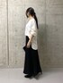 【インナー】 1枚でもレイヤードでもお使いいただけ る汎用性の高いプルオーバー 袖口はリブでブラウジングもしやすくしています。 【スカート】36サイズ ドレープ性と膨らみを併せ持ち、程よく体に馴染むためスタイルアップ効果も◎ バイヤスフレアで汎用性の高いスカート。 コートやダウン、ヘアリーなニットでも何にでも合わせやすくオンオフ使用可能 ウエストゴムでリラクシーな履き心地で裏地付きです。