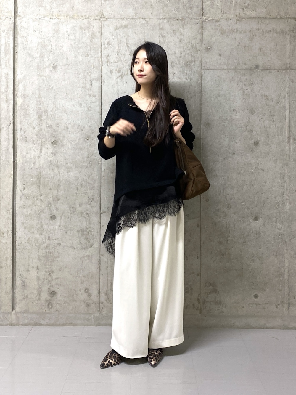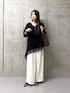 【トップス】 ・ハーフジップのデザインがポイントのスウェット ・お好みの位置までジップを下げて、抜けを作って着ていただくのがおすすめ ・ゴールドのジップが華やかさをプラスして、キレイ目にも使える1着 ・厚すぎない裏毛で、軽さのある着心地 ・スカートでもパンツでもバランスの取りやすい後ろ下がりのシルエット 【レースキャミ】 ・斜めになったヘムラインとレースのあしらいがトレンド感たっぷりのキャミソール ・いろいろなトップスにレイヤードしていただくだけで鮮度ある着こなしに ・後ろは、ループで調整していただけて、後ろに垂れた紐がさりげないポイントになってくれます 【パンツ】 後ろゴム仕様、ゆったりとしたシルエット。 イージーな履き心地ながら綺麗見えが叶う◎ ファスナーがなく脱ぎ着もラクチン。 タック入りで気になる腿周りをカバー! お仕事にはもちろん、お休みの日のカジュアルコーデや、オケージョンなどにもオススメのアイテムです。