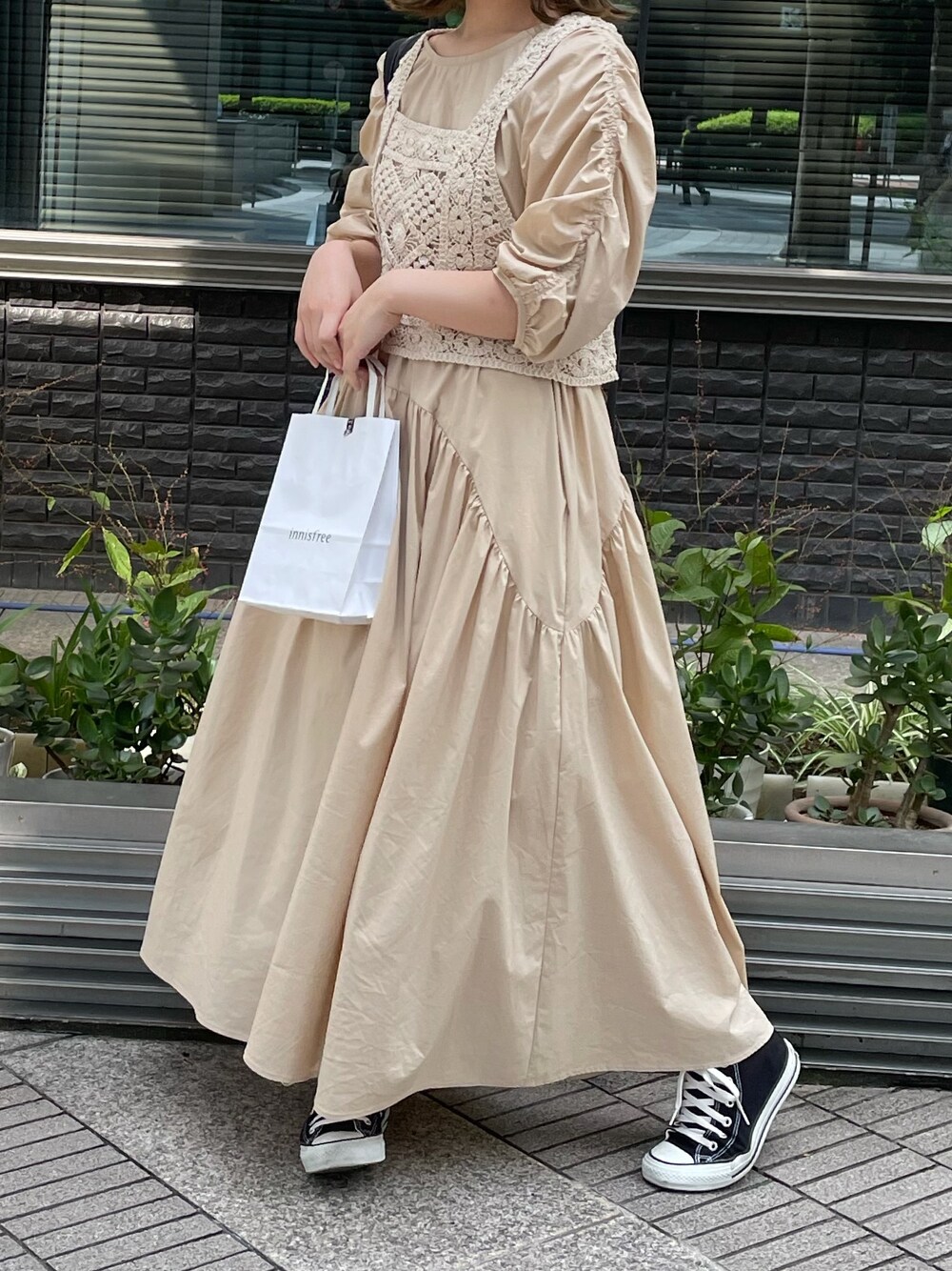 ことのワンピース「袖シャーリングタイプライターワンピース」を使ったコーディネート