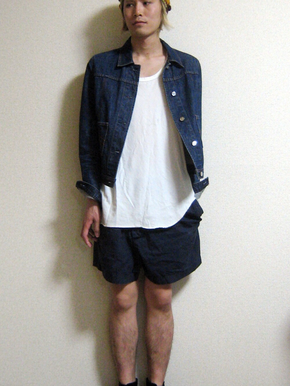 クールデニム☆ W&LTデニムのジャケットをメインにネイビー系の色でまとめました。 足元は黒のHIROのスニーカーで、パンツはカボチャ型のヴィヴィアン。 ターバンを合わせてボヘミアン的な外しを☆ ヴィヴィアンのねじれた感じのカボチャパンツがポイント(笑)