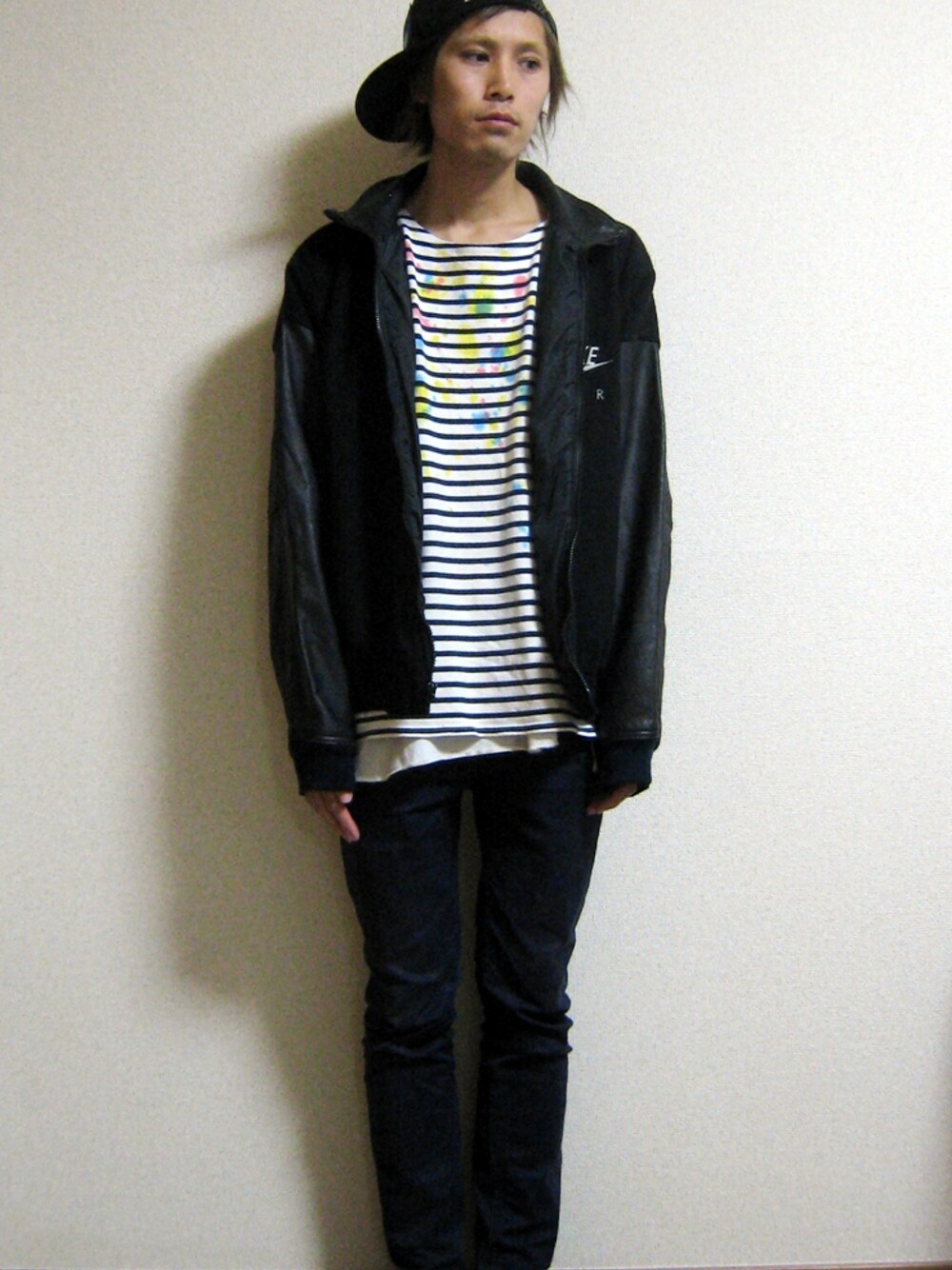 ブラックタウン☆ 大き目のスタジャンにネイビーのパンツを合わせて靴はジャックパーセル。グランジLOVE★