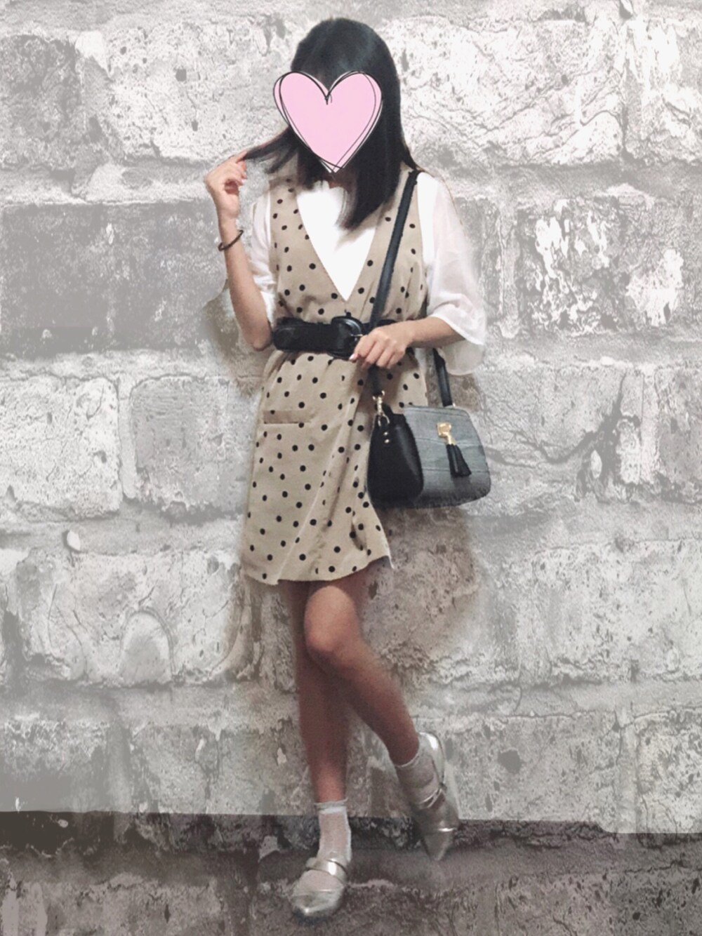 少し春っぽい、、? · · 靴下とトップス(袖)はシースルーになってて夏っぽい物を着用しました! · ワンピースは古着なのでどこのか分かりませんが800円くらいでゲットしました🙂