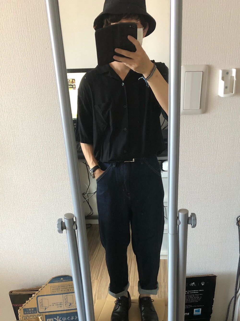 近所のGUとユニクロと電気屋に行ってきた際のコーデです。 このデニムはUNIQLO Uのデニムです。 久々にデニム履いたのですが、とてもシルエットも綺麗で大満足です! 黒シャツとハットと革靴でドレス感足しまくって、バランス取ってます。 ちょっとデニムにハマりそうです笑