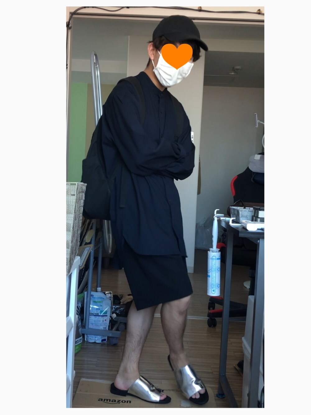 オーバーサイズのスタンドカラーシャツを使ったコーデです! ポイントは ・ワイラインをキレイに作るために、下は短パン ・リュックで上半身のボリュームアップ ・シルバーのサンダルで、地味感の払拭 です! やっぱりシャツはかっこいいですよね〜