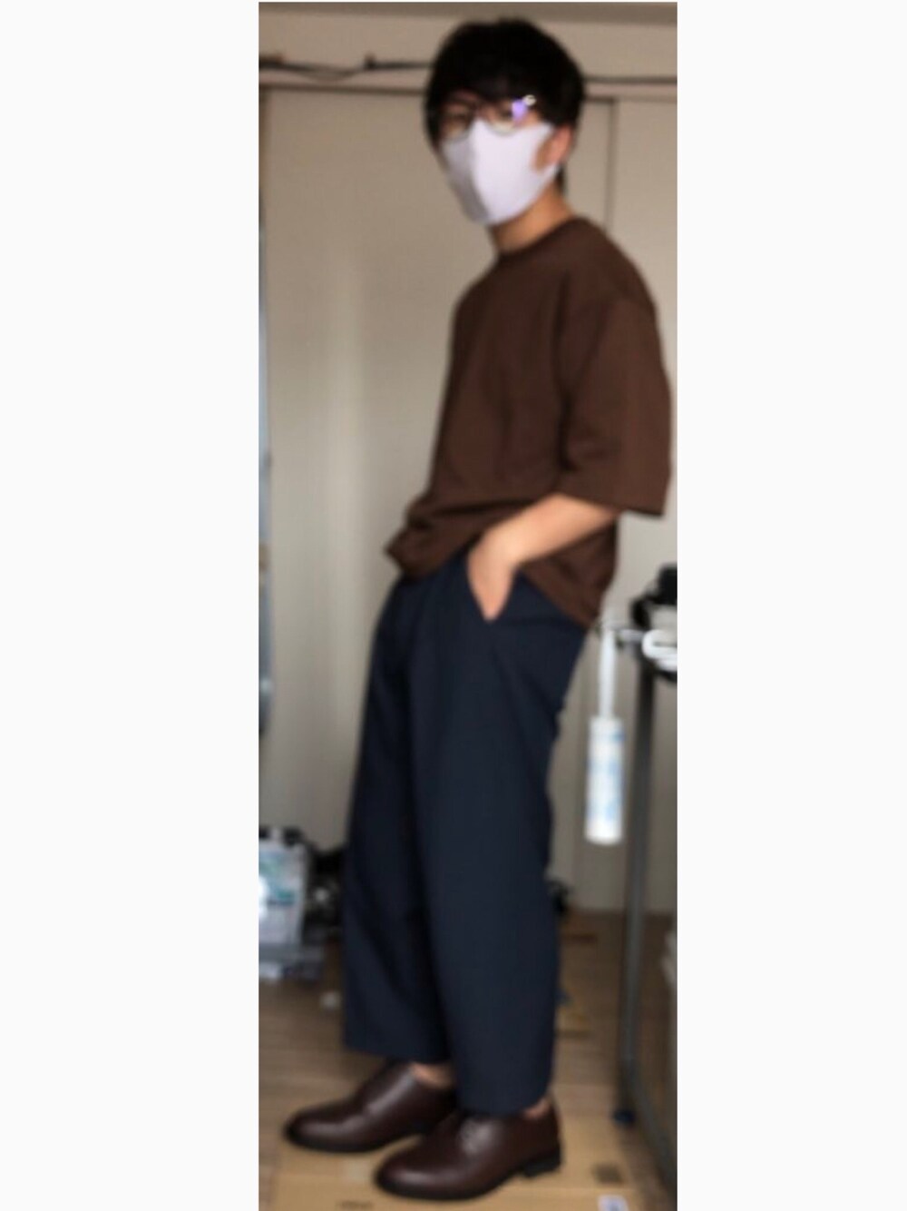 トレンドのブラウンを使ったコーデです! Tシャツと少し太めのスラックスで、シルエットを綺麗に見えるようにしています。 ネイビーのスラックスと茶色の靴で、色の差を少なくして、足を長く見えるようにしてます。 白と黒を抜いたコーデは難しいけど、楽しいですね〜
