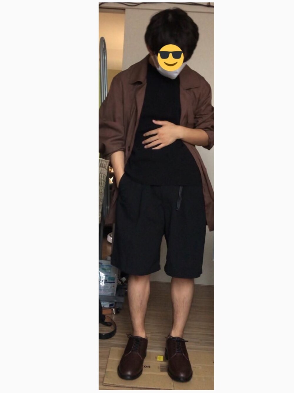 だいぶ秋が迫ってきましたねコーデです! まだ夏ではあるので、短パンで涼しくしてます。 ブラウンとブラックの色味で秋感を醸し出してます。 色味がとても秋っぽいので、短パンでバランスをとっているコーデですね! 季節感意識するとオシャレに見えますので、ぜひ