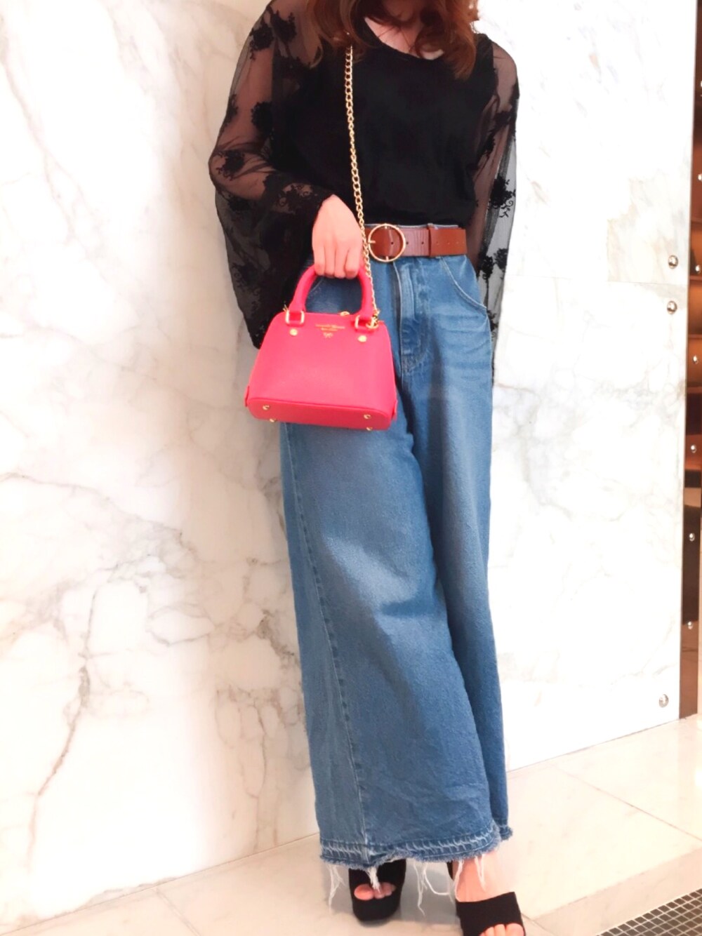 ワンポイントのアクセントにマゼンダのミニバッグ♪ トレンドの刺繍も取り入れたコーディネートです♡♡