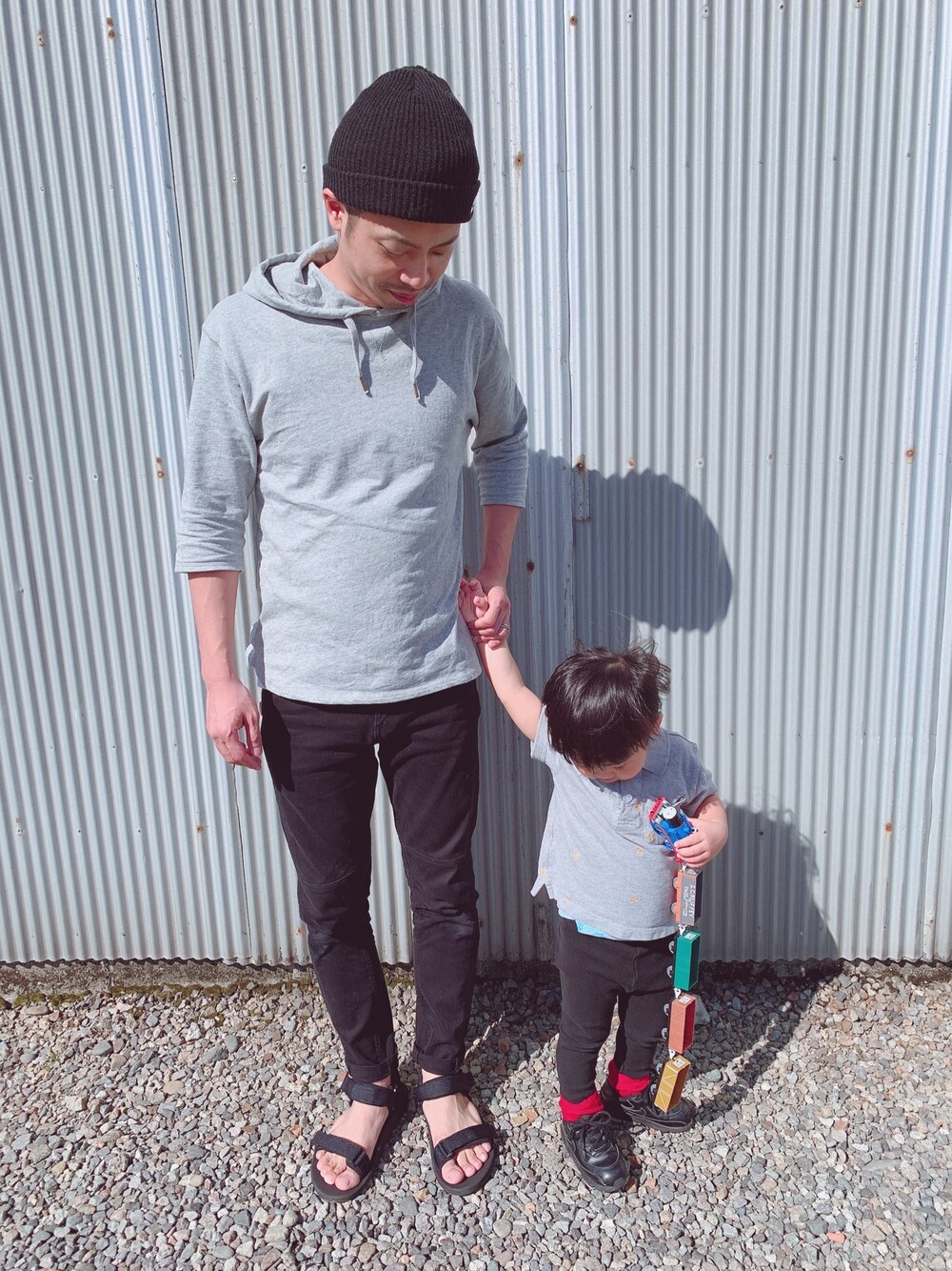 いつも いいね❤︎ お気に入り+ ありがとうございます(*˙˘˙*)❥❥ コボちゃんヘアー やんちゃboyのコーデ記録_✍ してます( ◍•㉦•◍ ) 寒いのに まだ 半袖載せてて すいません(T_T)笑 いつかのパパリンク👨🦱👦🏽 カラーでリンク♡♡ グレーとブラックで🙆 STUSSYのポロシャツは 古着で500円もしなかった🙏神🙏💓