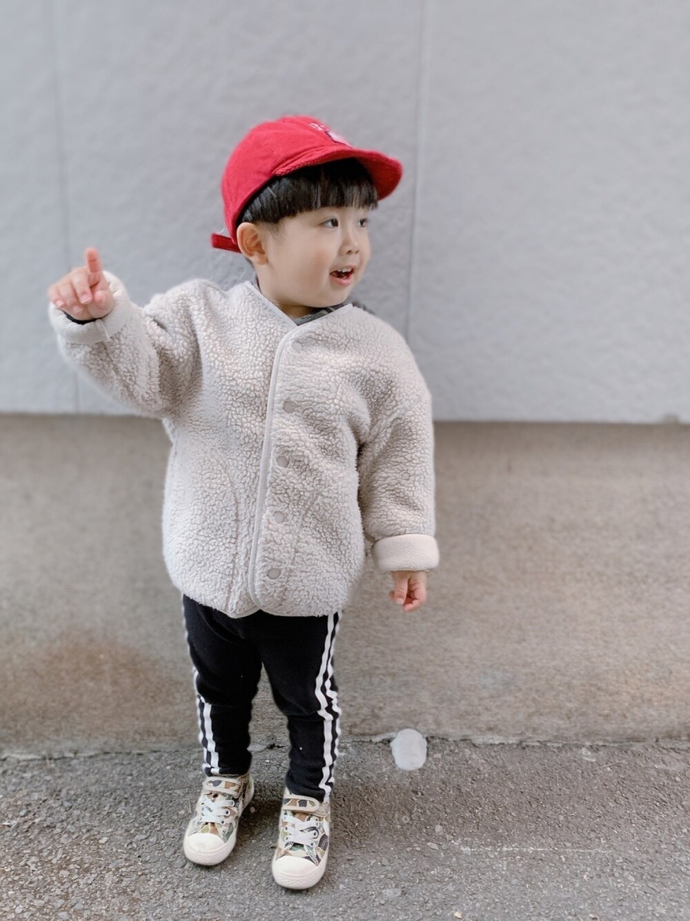いつも いいね♡ お気に入り+ ありがとうございます( ◍•㉦•◍ ) フォローも嬉しいです** コボちゃんヘアーの やんちゃboy👦🏽の コーデ記録してます_✍ 冬アウター着回しに ギリギリ応募してみる〜!!☻ 皆さんの投稿みてたら 目がキラキラしてくる!!! お洒落な人達見るの、癒しだ🥺 こっちゃんコーデは 悩んで GUでSALEで900円位で GETした ボアジャケットで チャレンジ〜(* ॑꒳ ॑* )⋆* コーデ③ は 赤 × カモ で ミリタリーに 🙆 ほんとは フロントボタン 外して迷彩柄のパーカーを 見せたかったけど こっちゃんが絶対ボタンしたい! ってゆうので😂😂(笑) ラインパンツで足元はスッキリ✧✧ スニーカーはコンバースの 大好きなシェブロンスターの 迷彩柄です( ◍•㉦•◍ )♡ 1回脱色して薄くしてます🥺💕