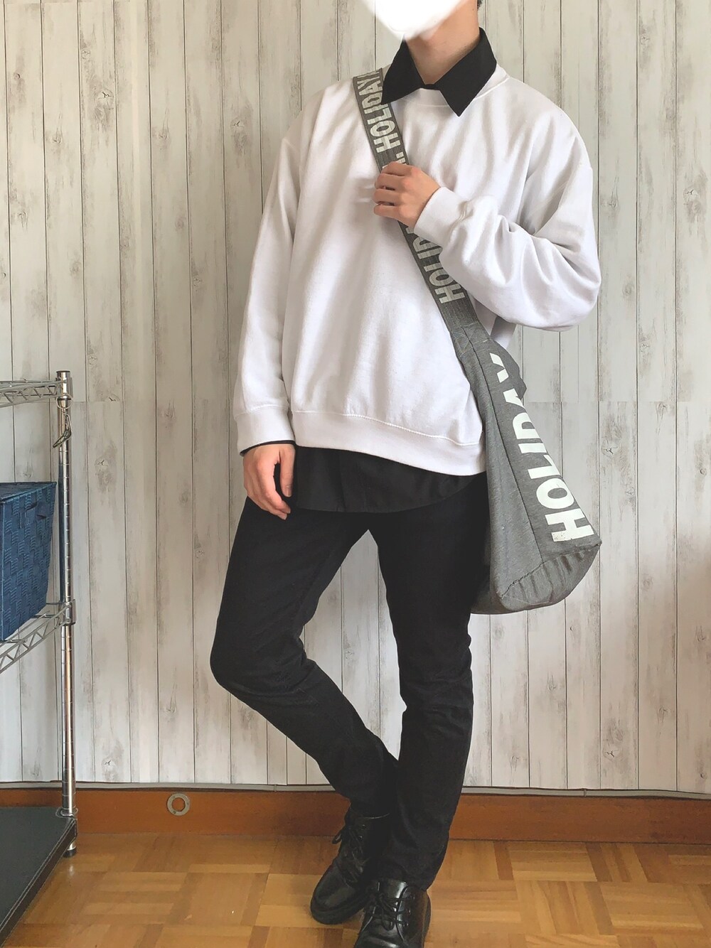 JINのスウェット「ギルダン USAオーバーサイズ ロングスリーブプルオーバークルースウェット」を使ったコーディネート