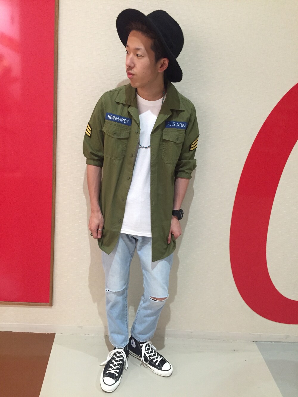 トレンドのミリタリーアイテム☆ クラッシュデニムと合わせてトレンド感のあるスタイリング!