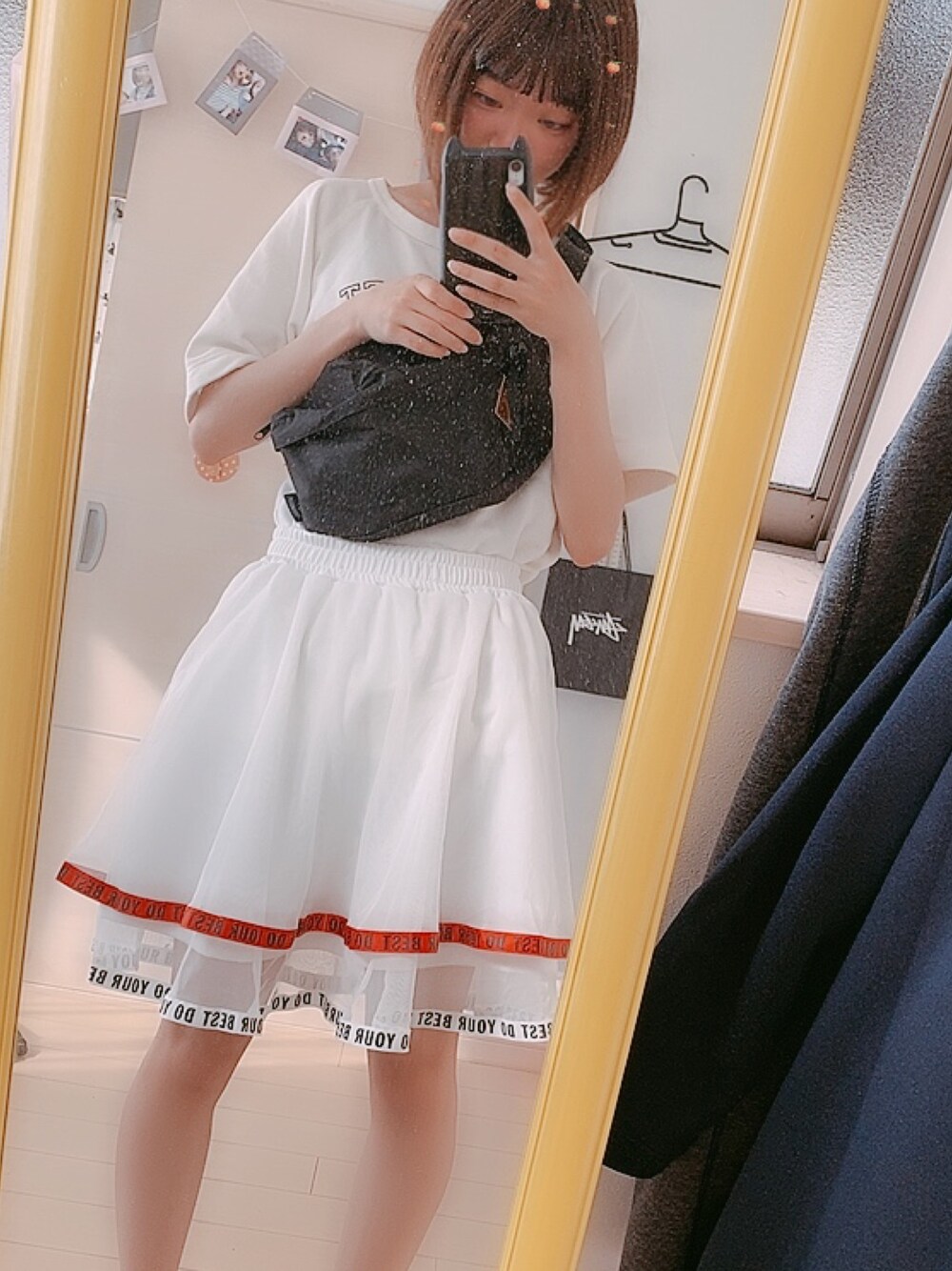 ホワイト系のトップス、ホワイト系のスカートを着用したレディースの春コーディネートの1枚目の写真