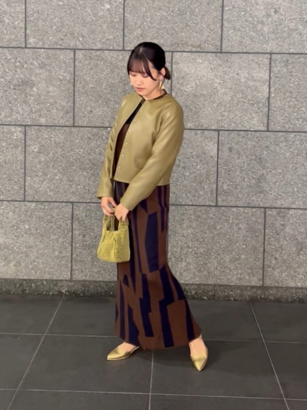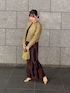 ブラウンのセットアップにカーキのレザージャケットを合わせた秋カラーのコーディネートです!