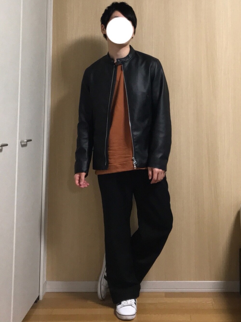 こうです。のライダースジャケットを使ったコーディネート