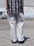 フロントからのチラ見えとバックのオンブレチェックが特徴のTシャツ。 サラサラとした生地感と太すぎず細すぎずのきれいなシルエットが特徴のパラシュートパンツ。 テック前回のパンツに1枚で主役になれるTシャツを合わせたストリートスタイルです。