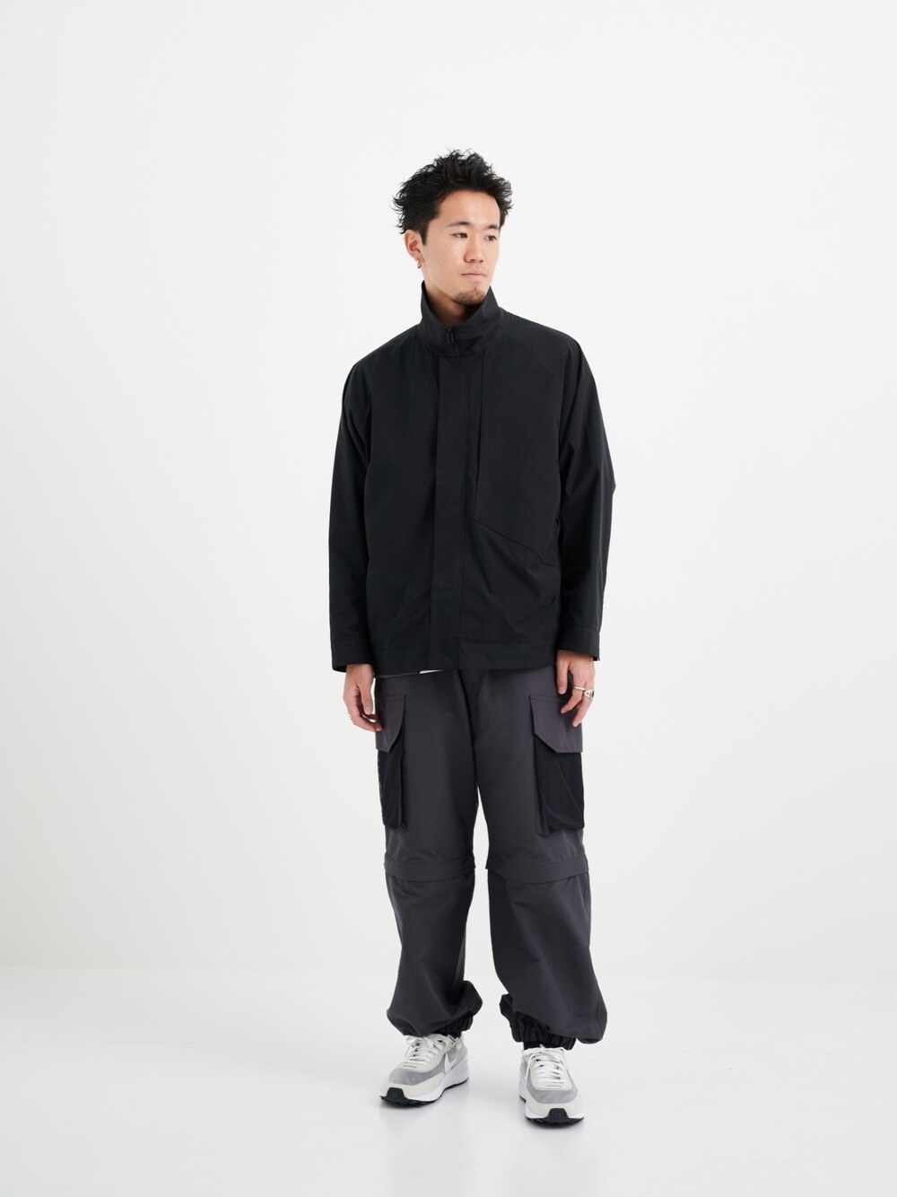 スタンドカラーと体型に合わせたシルエットを作るラグランスリーブが特徴のブルゾン。 撥水加工が施されていることで、機能性も抜群です。カーゴパンツと合わせることで全体的にトレンド感のあるスタイリングです。