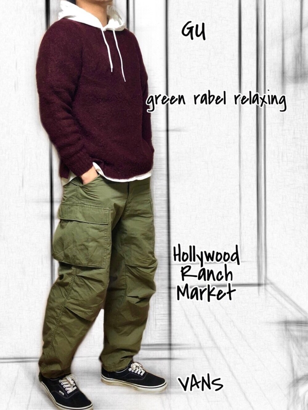 おはこんばんちは✋ 見ていただきありがとうございます😊 いいね、フォローもありがとうございます🙏 今日はボルドーカラーのニットカーゴパンツを組み合わせたちょいカジュアルコーデ🍷 ニットの下にジーユーのパーカーを忍ばせてるのが、ポイントです! このパーカーはレイヤードコーデに使えるので、重宝してます笑 昨日から温かくていいですね🌸 今日から土日!楽しむぞ👍