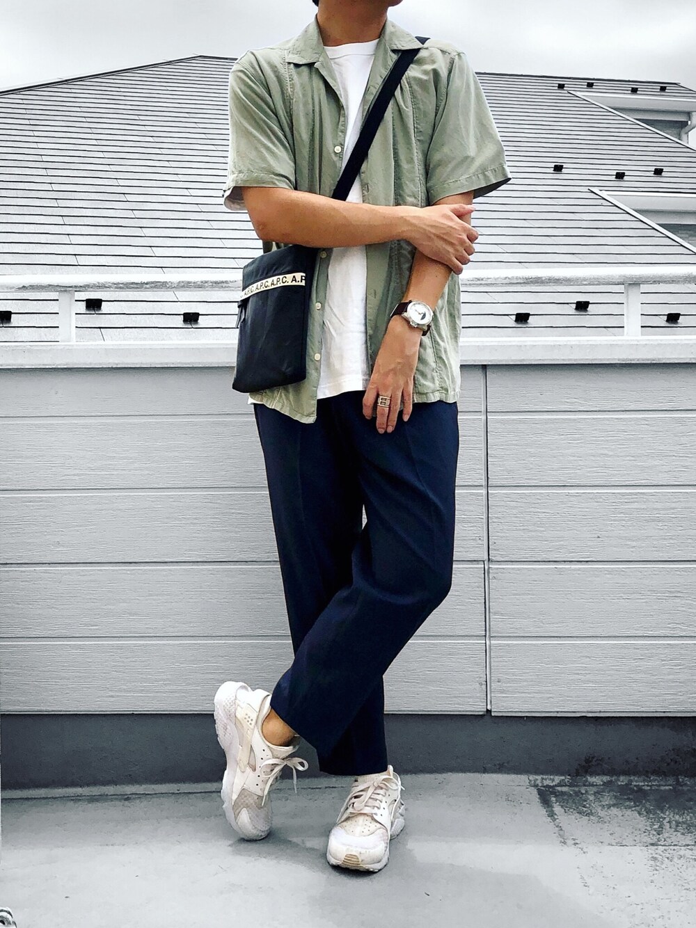 ✣✣✣✣✣✣✣✣✣✣✣✣✣✣✣✣✣✣✣✣✣✣✣✣✣✣✣✣✣ -𝟛 ℙ𝕆𝕀ℕ𝕋𝕊 𝕠𝕗 𝕋𝕆𝔻𝔸𝕐𝕤 𝕆𝕌𝕋𝔽𝕀𝕋 - ❶くすみカラーで可愛くトレンド感! ❷古着×UNIQLOで個性あるプチプラコーデに✌︎ ❸夏でも暑苦しくならないネイビースラックス。 ✣✣✣✣✣✣✣✣✣✣✣✣✣✣✣✣✣✣✣✣✣✣✣✣✣✣✣✣✣ フォロー、いいね!いつもありがとうございます^ ^ べー。です。 ・古着のシルク素材の開襟シャツ 1,900円 ・UNIQLO UのクルーネックT 1,000円 ・UNIQLO Uのワイドフィットテーパードパンツ 1,990円 ・NIKEのエア ハラチ ・A.P.C.のSACOCHE REPEAT 20P 古着のシャツをまた買いに行きたいなぁ。。 開襟シャツとポロシャツがめっちゃ欲しい! UNIQLO Uのワイドフィットテーパードパンツ 1日履きましたが、着心地抜群ですね! さすがはLIFE WEAR!UNIQLO! ではまた^ ^
