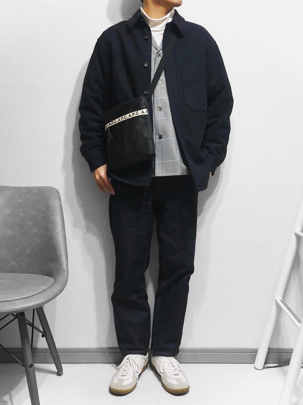 ✣✣✣✣✣✣✣✣✣✣✣✣✣✣✣✣✣✣✣✣✣✣✣✣✣✣✣✣✣ -𝟛 ℙ𝕆𝕀ℕ𝕋𝕊 𝕠𝕗 𝕋𝕆𝔻𝔸𝕐𝕤 𝕆𝕌𝕋𝔽𝕀𝕋 - ❶モノトーン+1色(ネイビー)でまとまり感! ❷白のタートルネックとスニーカー を入れて、明るさをプラス。地味さを回避! ❸オーバーサイズでトレンド感を✌︎ ✣✣✣✣✣✣✣✣✣✣✣✣✣✣✣✣✣✣✣✣✣✣✣✣✣✣✣✣✣ フォロー、いいね!いつもありがとうございます^ ^ べー。です。 ・Jacket:#uniqlo ・Shirt:#stevenalan ・Inner:#uniqlou ・Pants:#uniqlou ・bag:#apc ・Shoes:#germantrainer 今回はSteven Alanのシャツジャケットを インナーとして使ってみました。 ネイビーのアウターとの相性もバッチリです。 パンツはデニムパンツですが、 ネイビーのアウターと色が近いので、 セットアップのような印象を与え、 あまりカジュアルにはなりません。 そろそろセールも始まってきましたね。 メリークリスマス🎅 ではまた^ ^