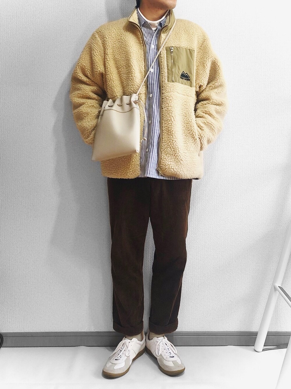 ✣✣✣✣✣✣✣✣✣✣✣✣✣✣✣✣✣✣✣✣✣✣✣✣✣✣✣✣✣ -𝟛 ℙ𝕆𝕀ℕ𝕋𝕊 𝕠𝕗 𝕋𝕆𝔻𝔸𝕐𝕤 𝕆𝕌𝕋𝔽𝕀𝕋 - ❶今年も流行りのボアとコーデュロイ素材で トレンド感を。 ❷レザー風の小さめバッグで上品さをプラス! ❸シャツのインナーにタートルネックTを入れて、 大人っぽさと温かさをプラス! ✣✣✣✣✣✣✣✣✣✣✣✣✣✣✣✣✣✣✣✣✣✣✣✣✣✣✣✣✣ フォロー、いいね!いつもありがとうございます^ ^ べー。です。 ・Blouson:#firstdown × #しまむら ・Shirt:#universaloverall × #bmingbybeams ・bag:#rageblue ・Pants:#globalwork ・Shoes:#germantrainer 最近急に寒くなりましたね❄️ そんな時頼りになるのが、ボアアウター。 今回はあえてカジュアルに振り切って、 コーデュロイパンツと合わせて、 温かみあるカジュアルコーデにしてみました。 コーデはオシャレさも大事ですが、 この季節はやはり防寒性、季節感も重要ですね。 体調管理をしっかりして、 この冬を元気に乗り切りましょう! ではまた^ ^