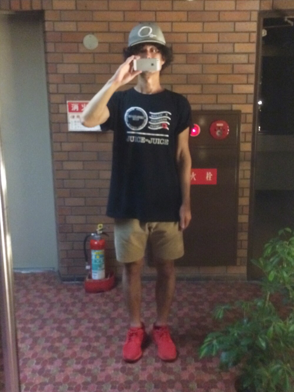キャップ ガンリュウ Tシャツ Juice=Juice ショートパンツ H&M スニーカー ナイキ カイシ 赤 2016.7.3(日) Juice=Juice 梅田クラブクアトロ